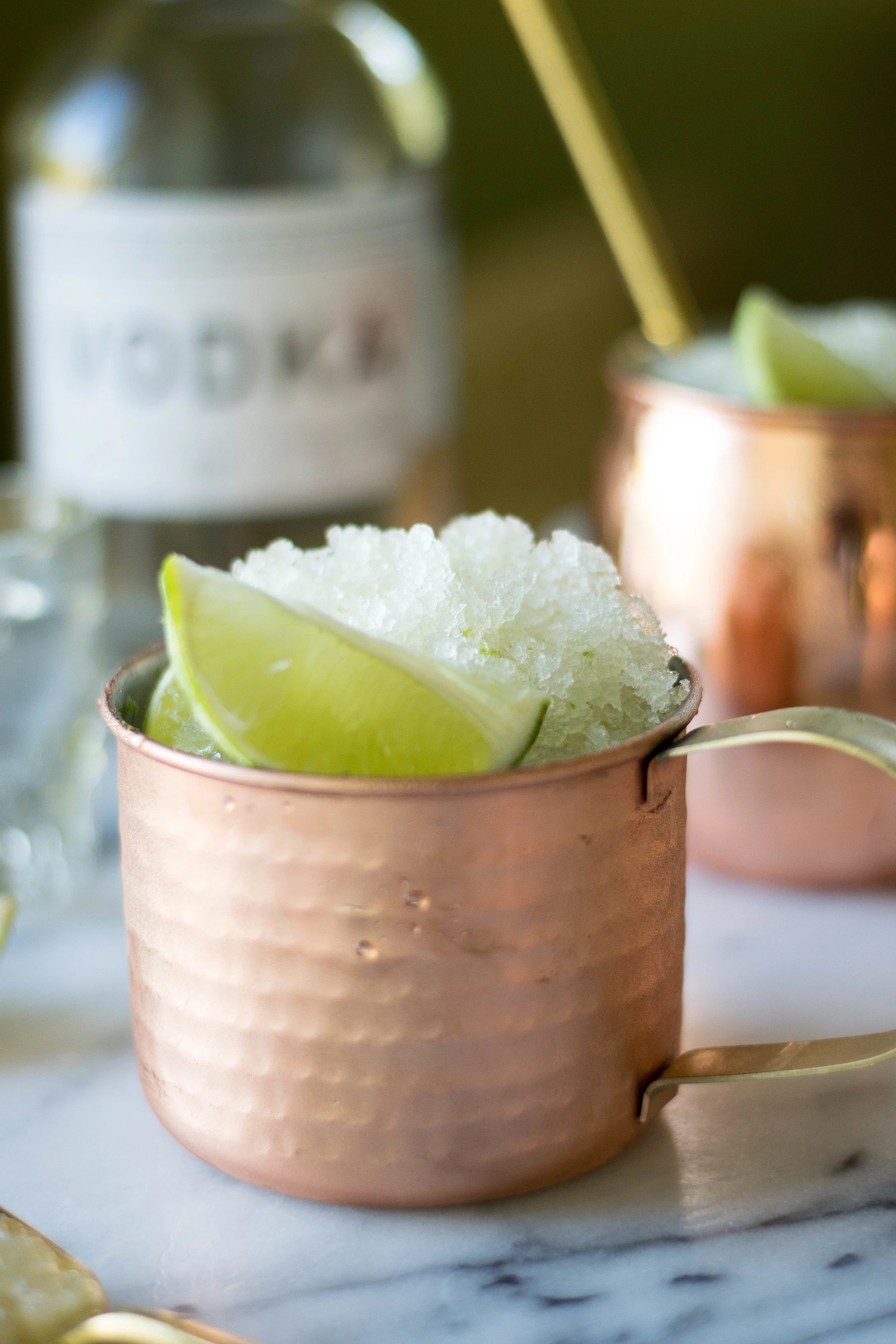 So, when I was watching The Mind of A Chef recently and saw April Bloomfield make a moscow mule snowcone, I was like, whoa, that's genius! So, here we are. This recipe is so easy to make and really fun to sip on. And the best part is, when it melts, it doesn't become diluted since your "ice" is pure ginger beer. So awesome, right?